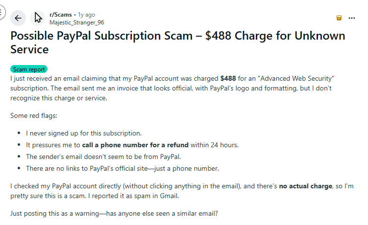 Nutzer erhalten häufig E-Mails mit Zahlungsaufforderungen von unbekannten Absendern. In einem Reddit-Thread wurde davor gewarnt, dass die Interaktion mit solchen Rechnungen zu Folgebetrugsmaschen führen kann, beispielsweise zu sogenannten Recovery-Betrügern, die Gebühren für die angebliche Behebung des Problems verlangen.